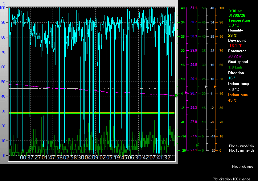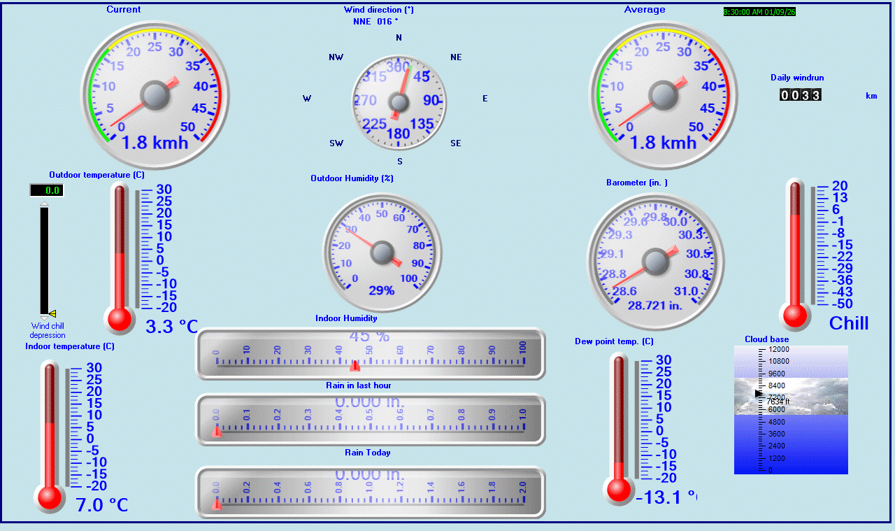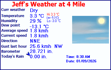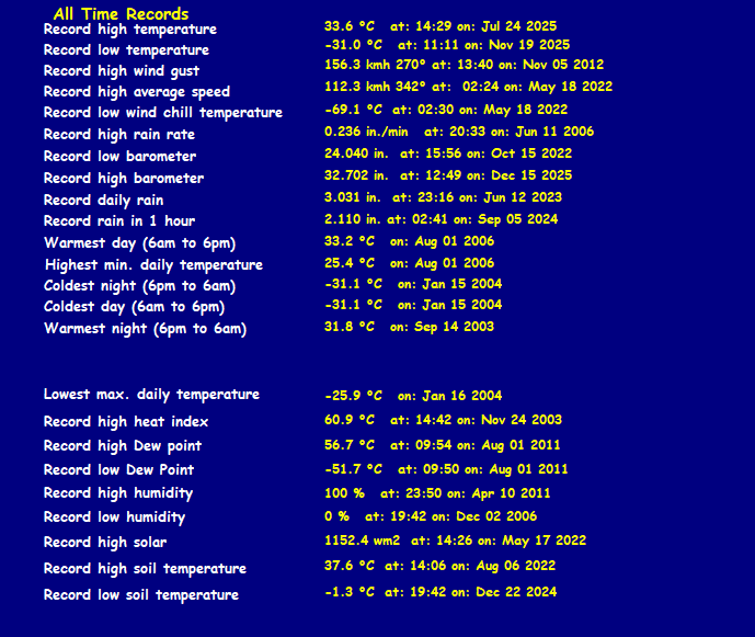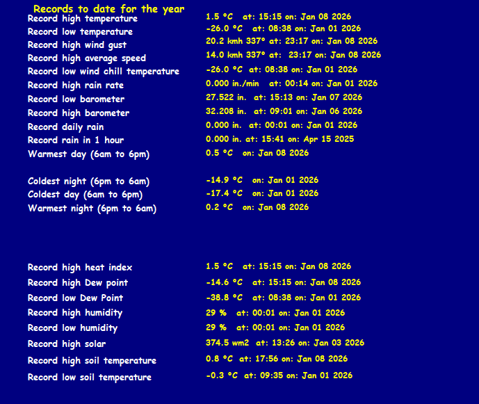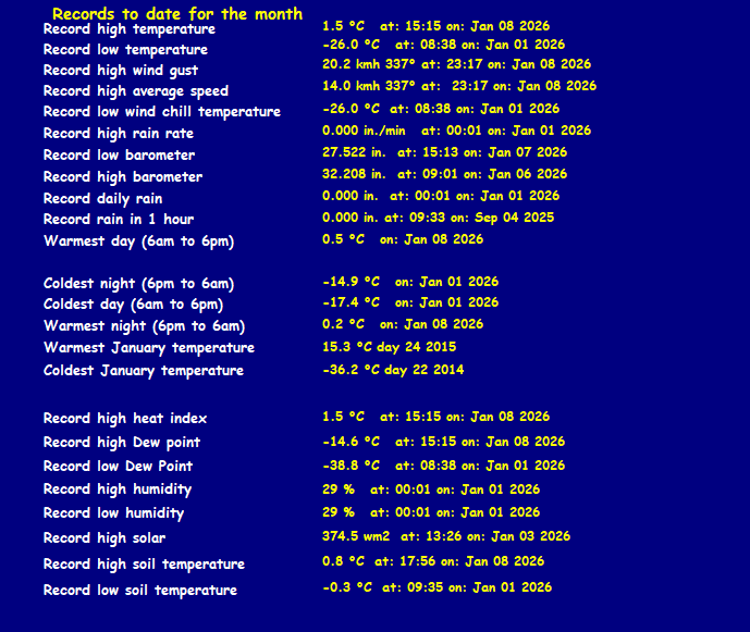 | Yesterdays rainfall | 0.00 in | DewPoint | -14.8°C (Wet Bulb :-2.9°C ) |