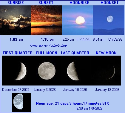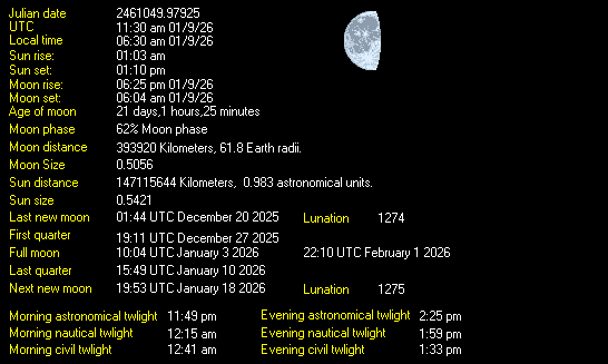 | Current 00:21 hours of sunshine today, current sky: Night time/Dry | |||