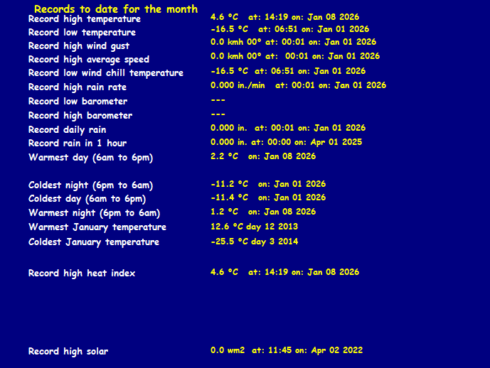 | Rainfall This month | 0.00 in. (0.0 mm) | Rainfall To date this year | 0.00 in. (0.0 mm) |