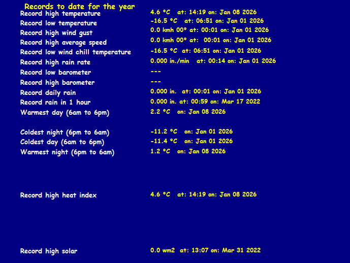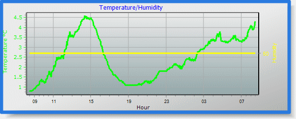 | Maximum Temperature (since midnight) | 4.3°C at: 1:57 PM | Minimum Temperature (since midnight) | 0.6°C at: 6:35 AM |