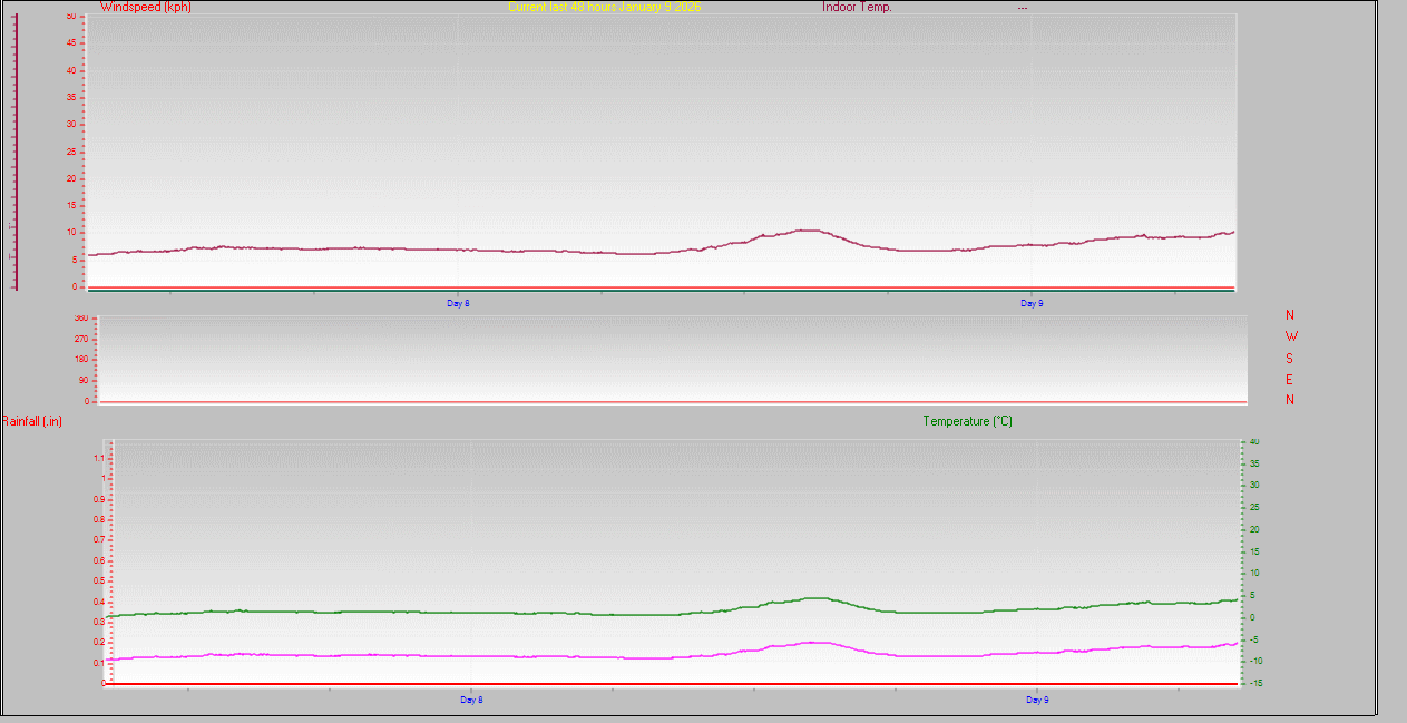 | Rainfall (last hour) | 0.00 in. (0.0 mm) | Rainfall (since midnight) | 0.00 in. (0.0 mm) --- |