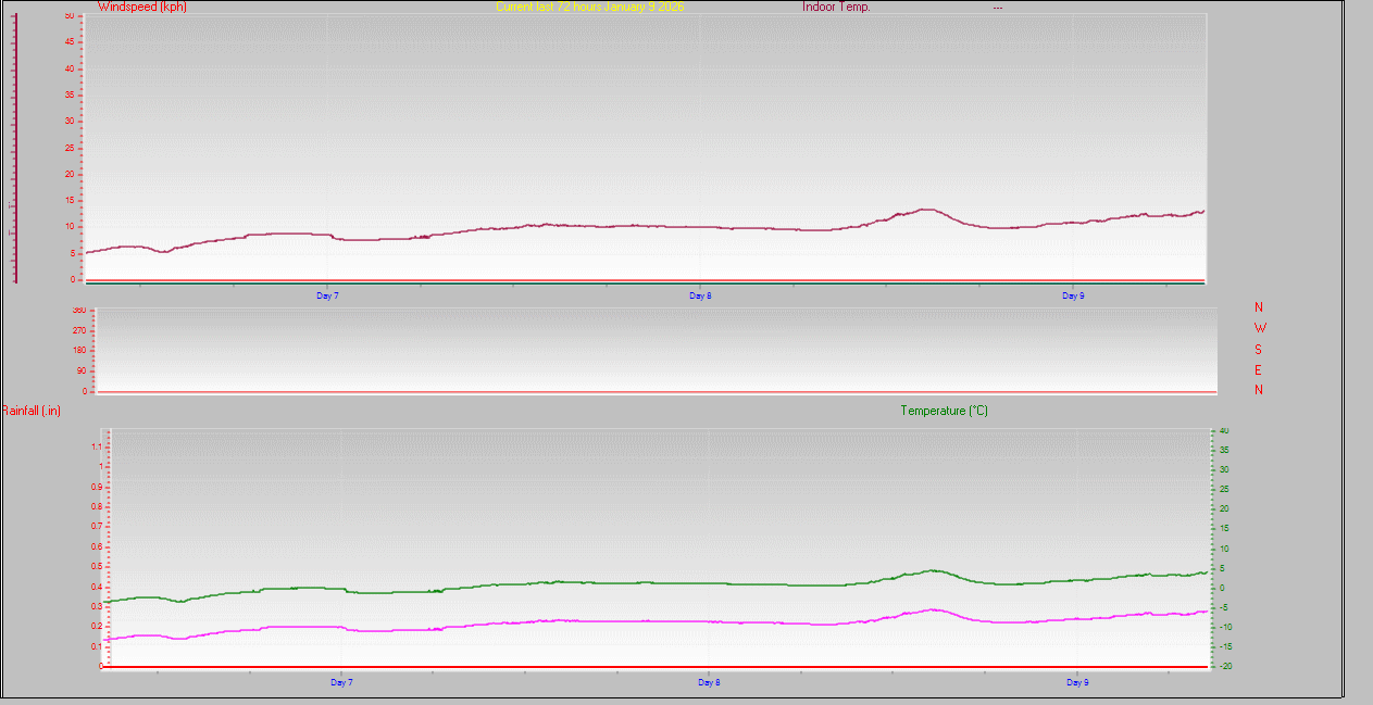 | Maximum rain per minute (last hour) | 0.00 in/min | Maximum rain per hour (last 6 hours) | 0.00 in/hour |